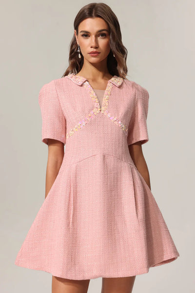 Göğüs Altı Dikişli V Yaka Mini Elbise