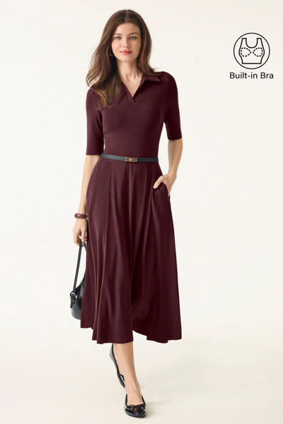 Şık Kısa Kollu ve Yüksek Yaka Midi Elbise