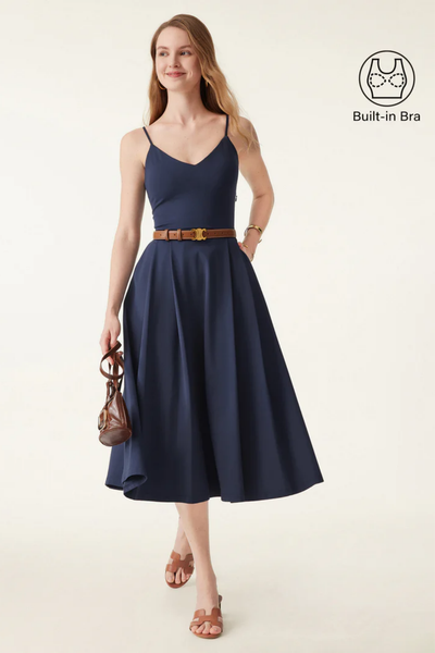 V Yaka Ayarlanabilir Belli Midi Elbise