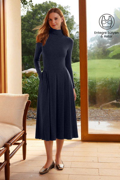 Heat Tech Uzun Kollu Zarif Midi Elbise