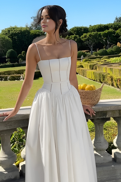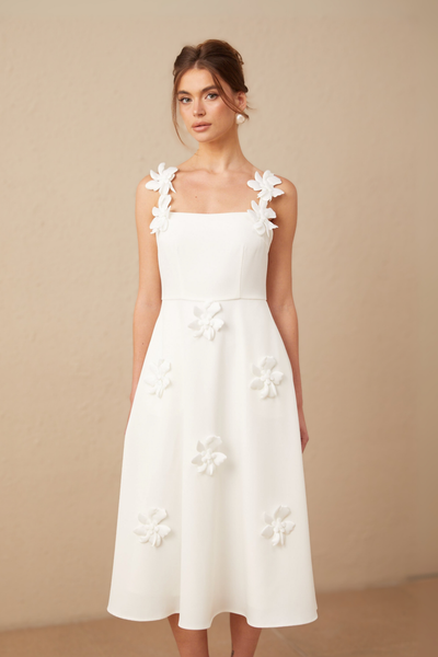 Beyaz Renkli Çapraz Yaka Midi Elbise