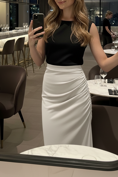 Eteğin, %100 pamuktan üretilmiştir; bu kumaş yumuşak, nefes alabilir ve tüm gün boyunca rahat bir kullanım sağlar.