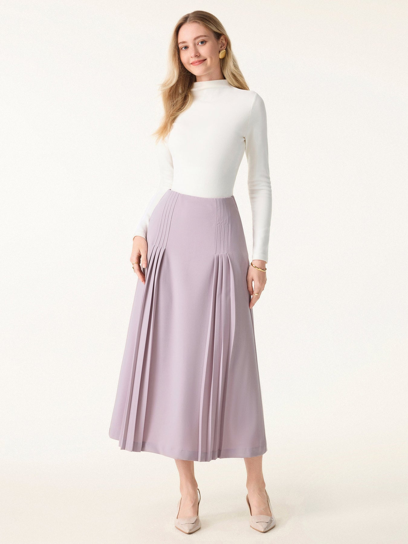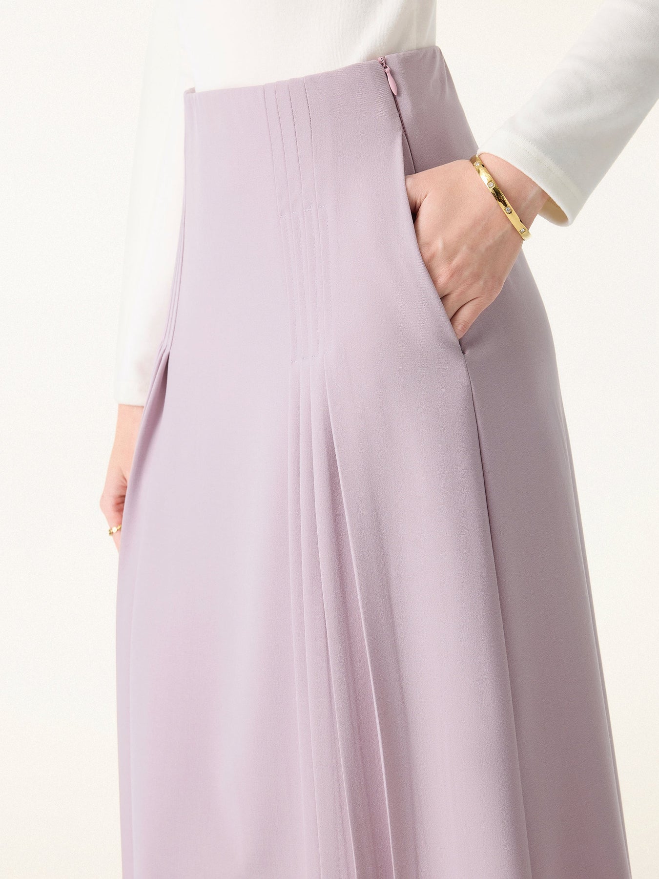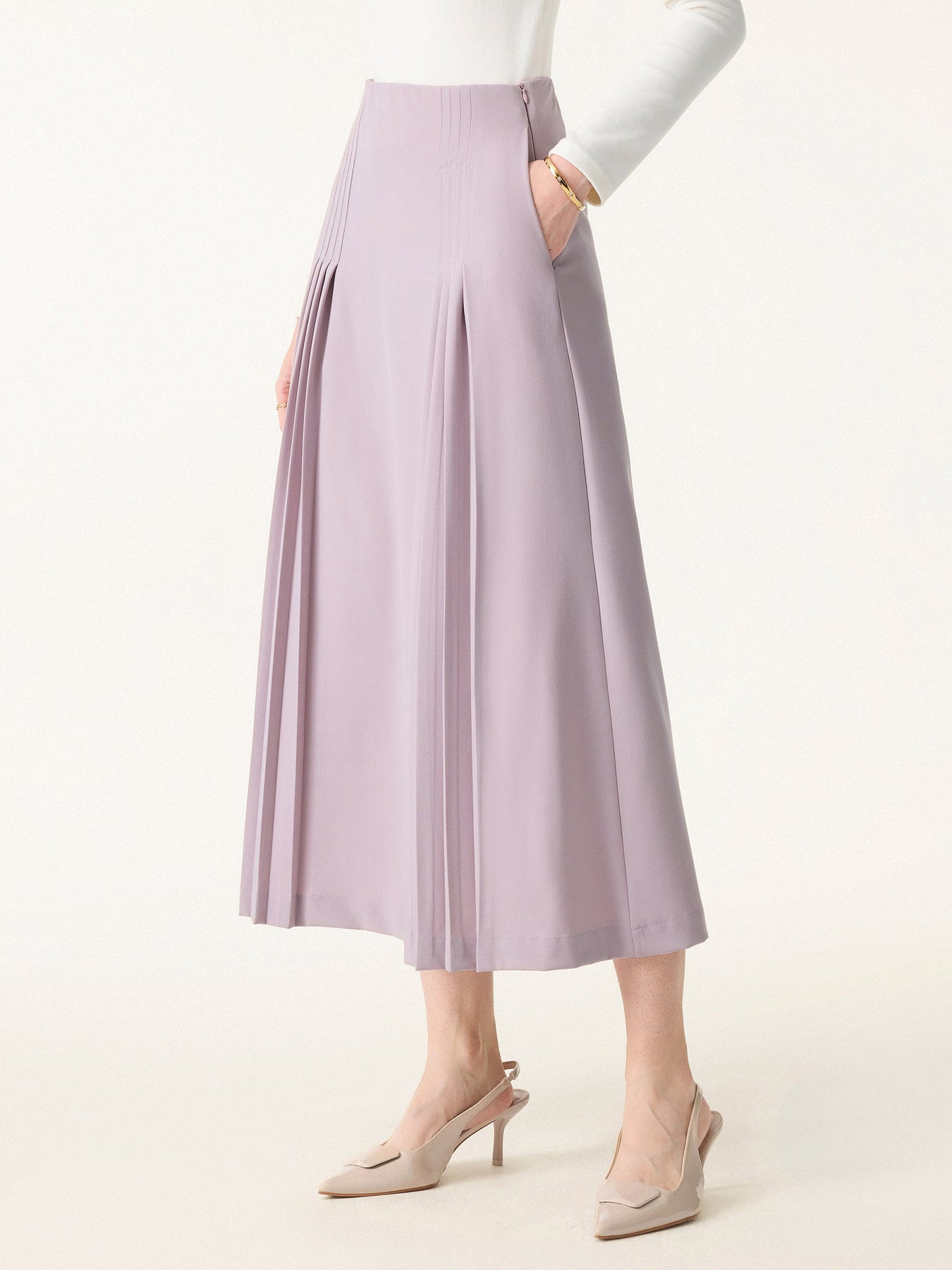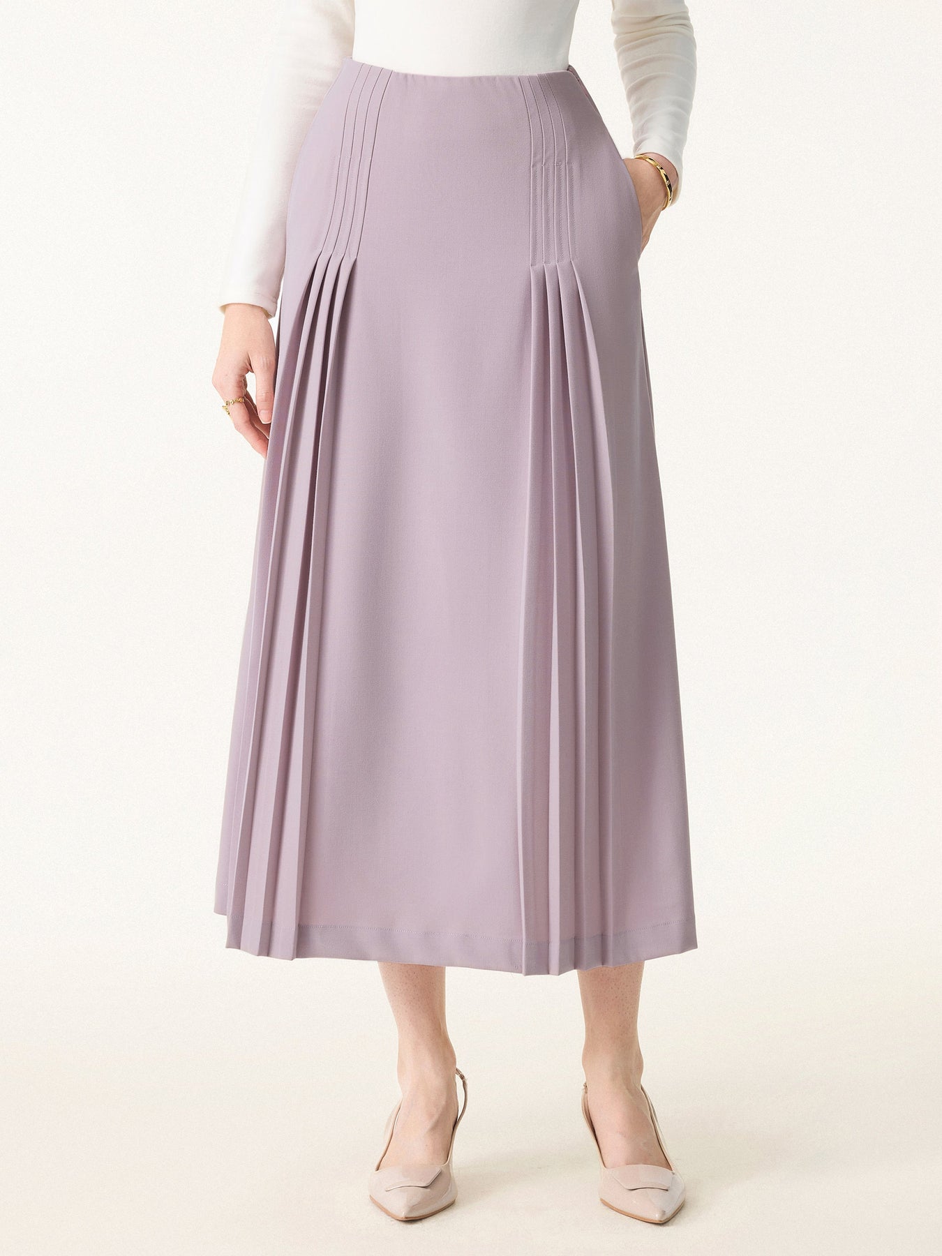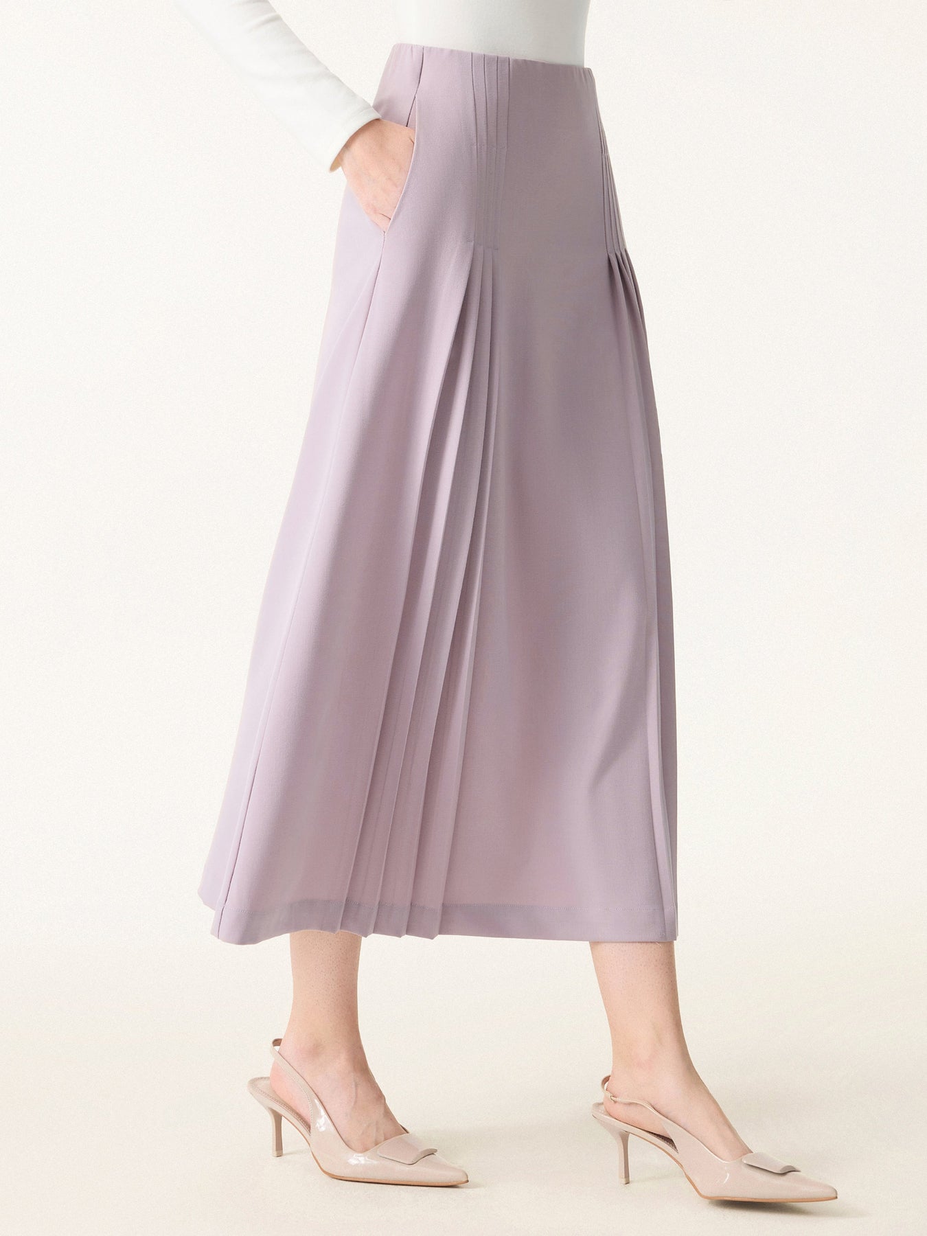 Şık ve Rahat Cepli Düz Dökümlü Midi Pilili Etek